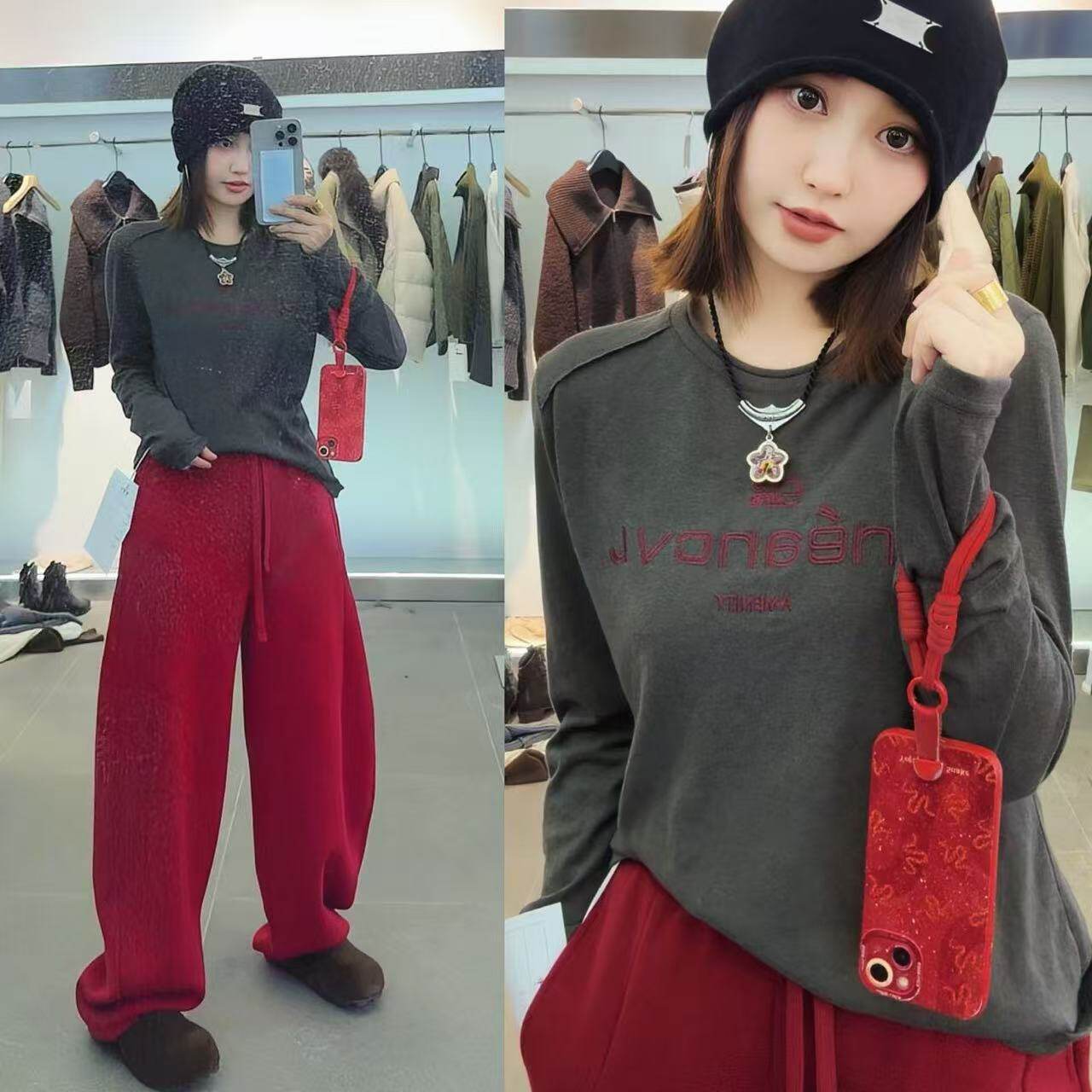 【粉红爷爷专享】纯色设计感印花长袖毛衣99GV706