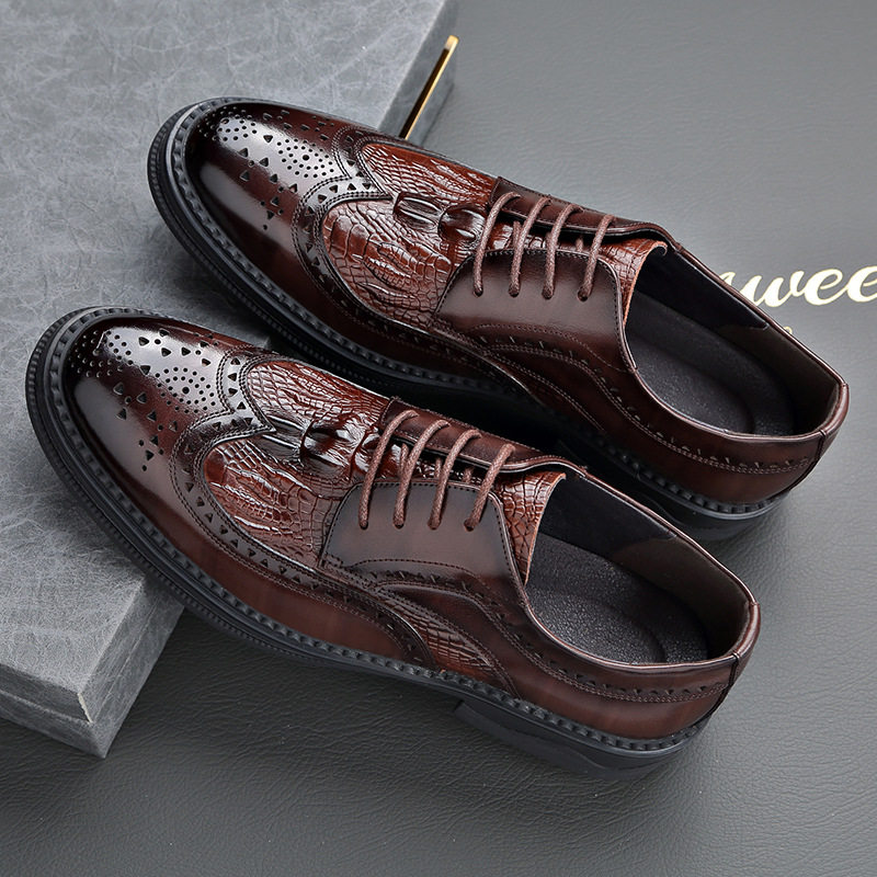 冬季奥古斯都布洛克男鞋真皮商务正装英伦雕花男士皮鞋系带男鞋