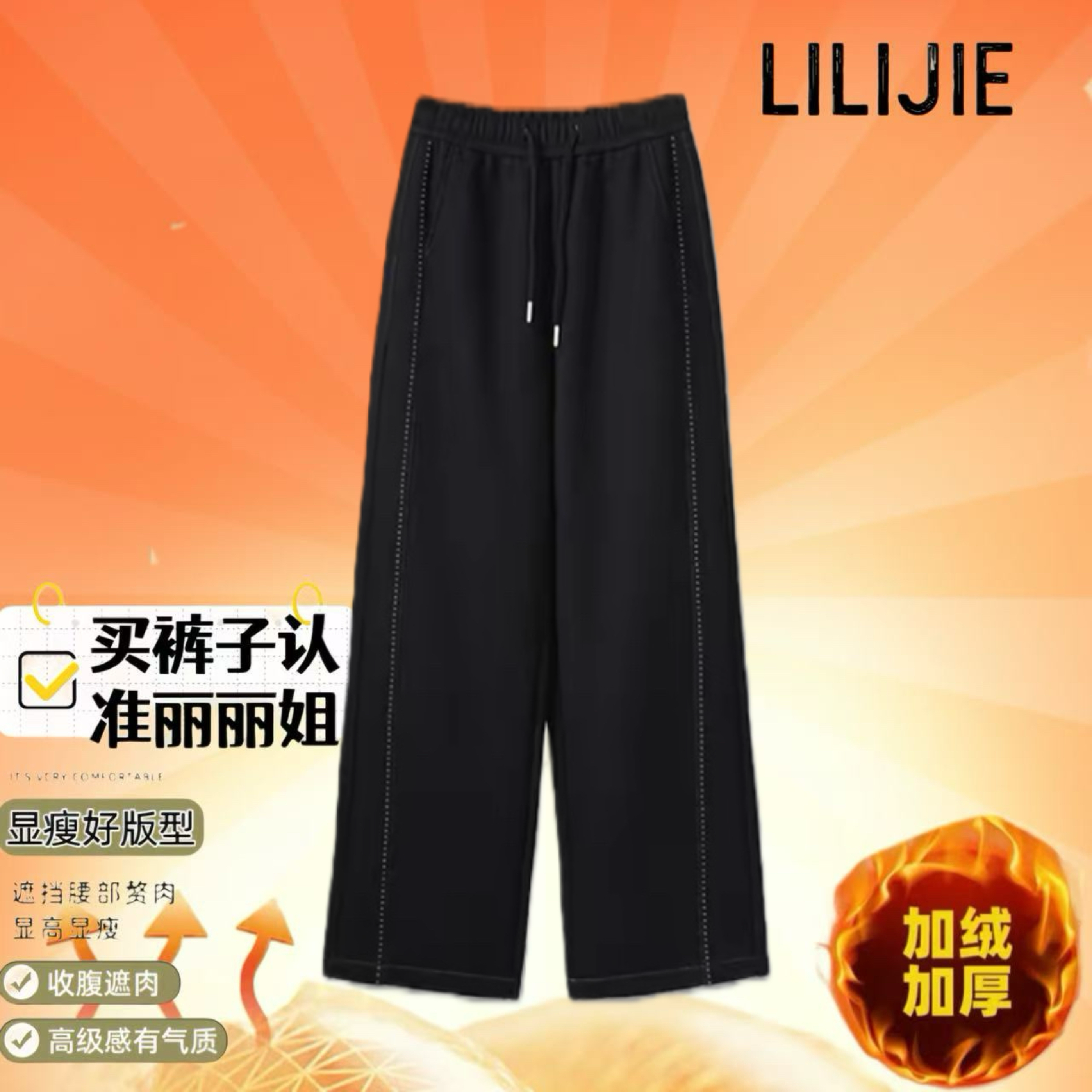 【石墨烯修容裤】25冬女装新款加厚保暖牛仔阔腿直筒拖地长休闲裤
