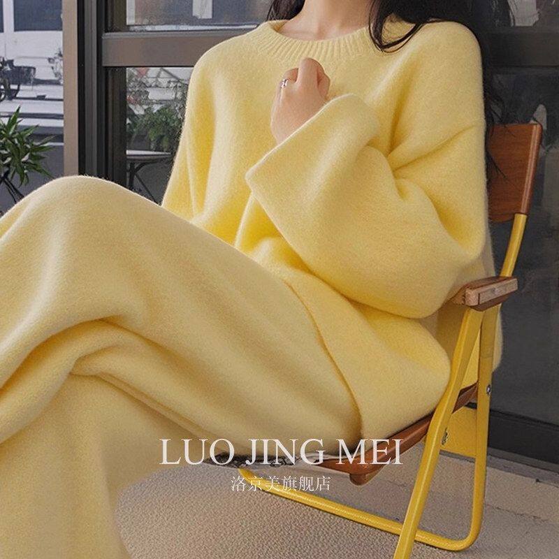 2025超火两件套慵懒风韩系温柔名媛气质高级松弛感奶黄色毛衣套装