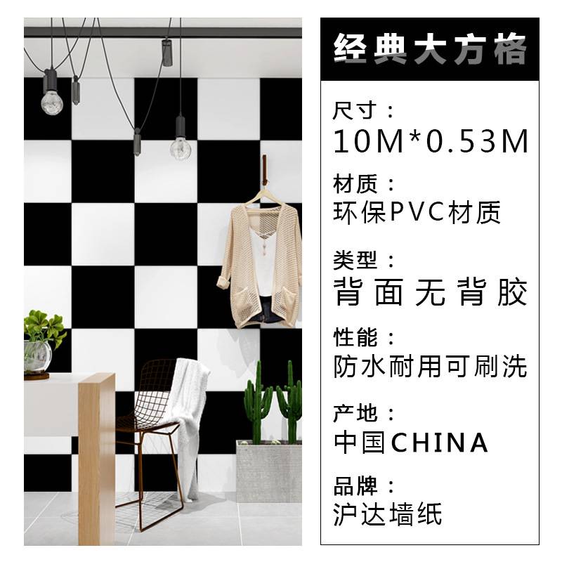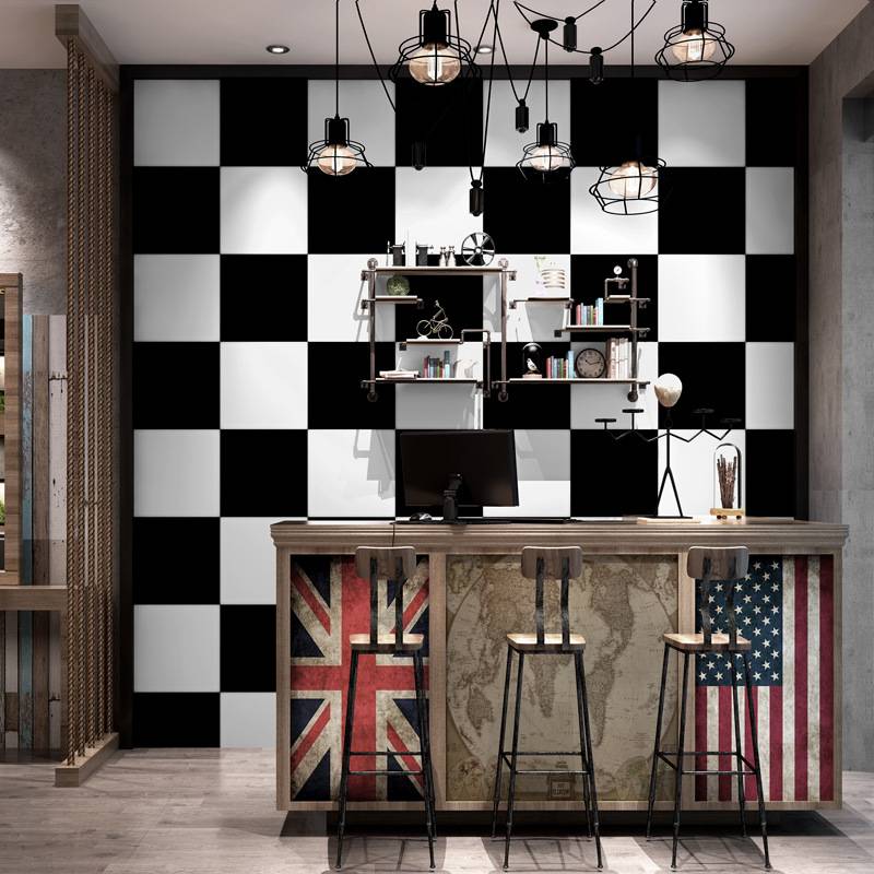 黑白方格子方块墙纸现代简约餐厅发廊美发理发服装店女装背景壁纸