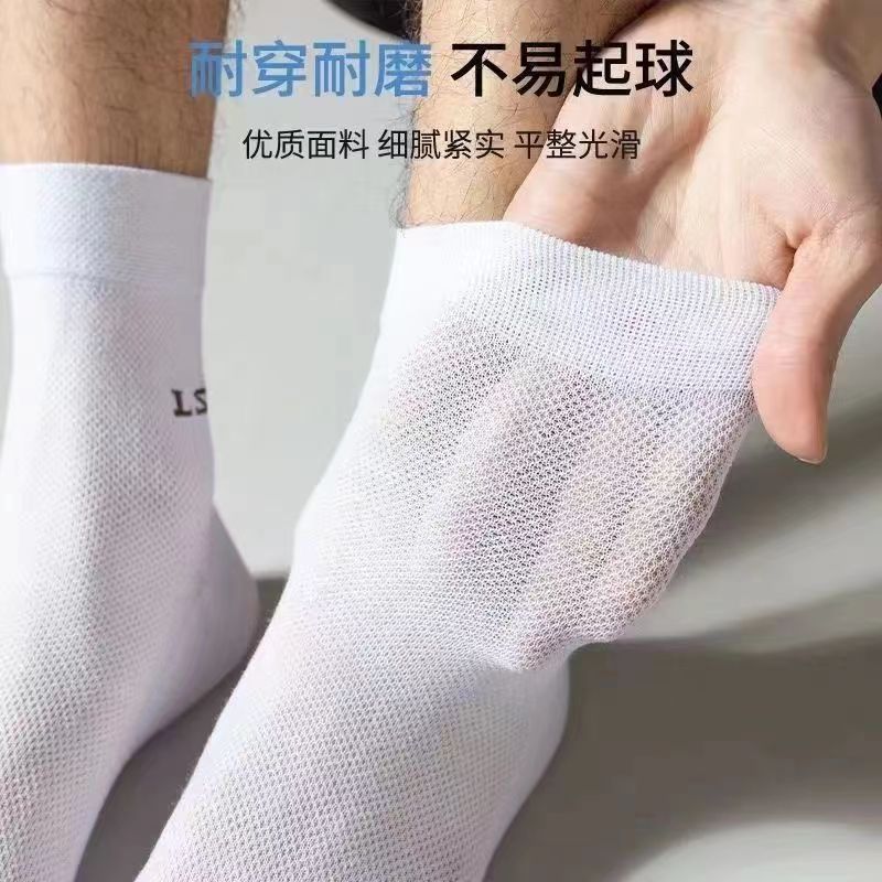袜子男夏季薄款时尚袜透气网眼袜吸汗中筒袜纯色简约潮流精品袜子