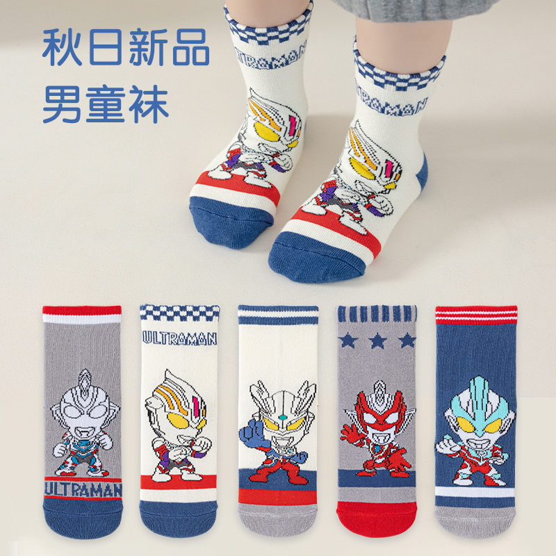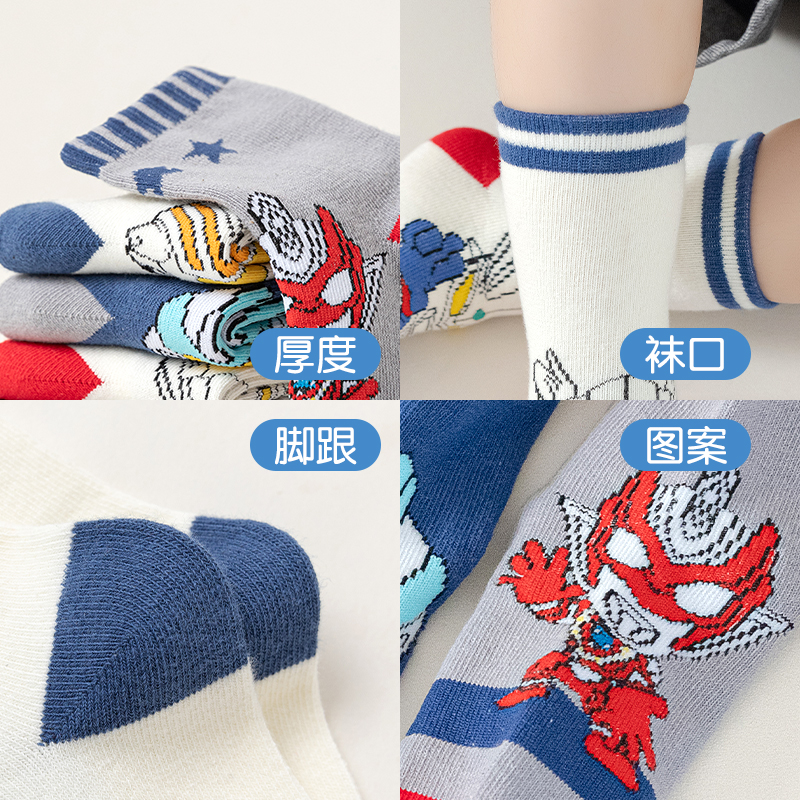 奥特曼儿童袜子男童纯棉秋冬棉袜无骨袜中筒袜舒适透气卡通男孩袜