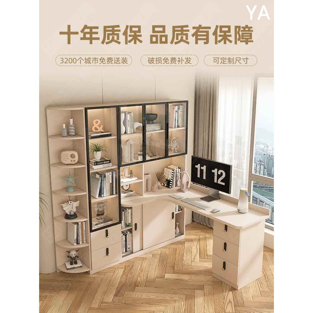 转角书桌书架一体桌子书柜办公桌简约现代学生卧室家用实木电新款