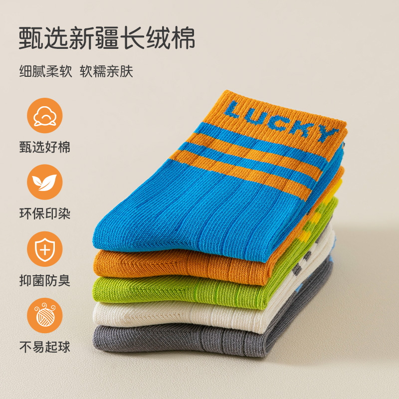 无骨抗起球7A抑菌纯棉春秋季儿童袜子柔软吸汗透气袜百搭中筒潮袜