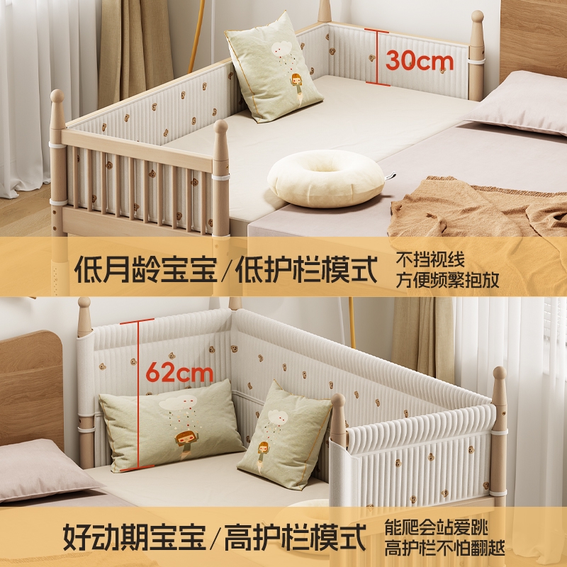 榉木儿童床拼接床婴儿床拼接大床加宽床实木单人男孩宝宝床边