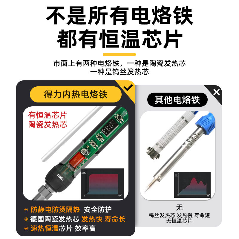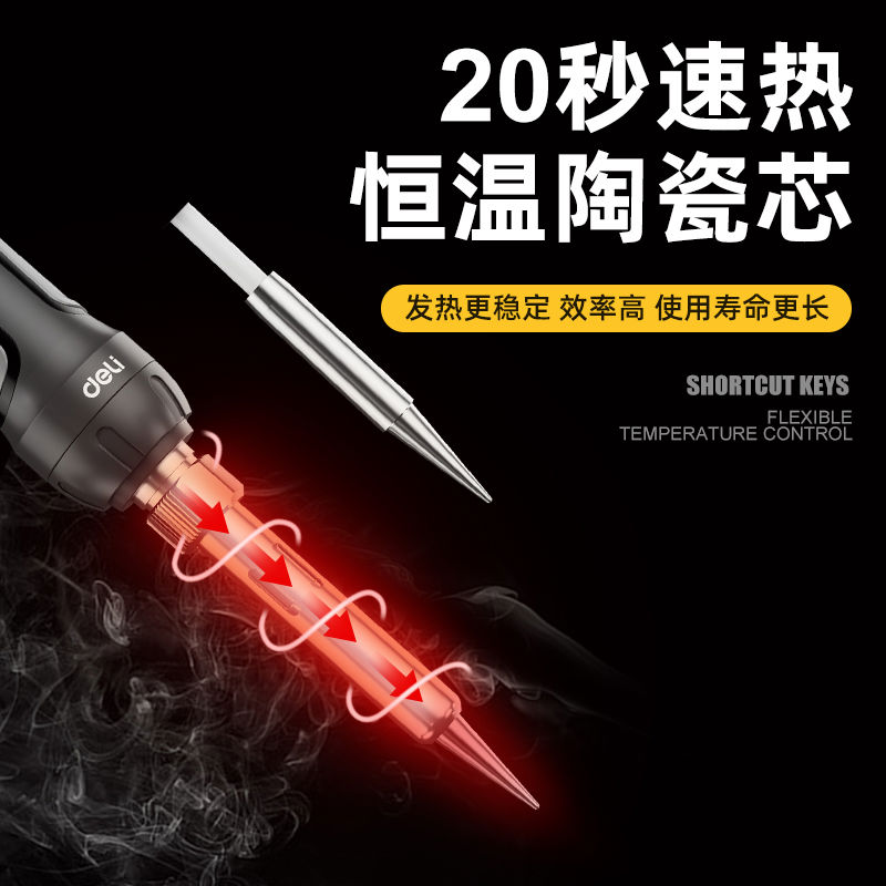 得力恒温电烙铁小型电焊笔维修焊接家用焊锡枪60W电洛铁工具套装