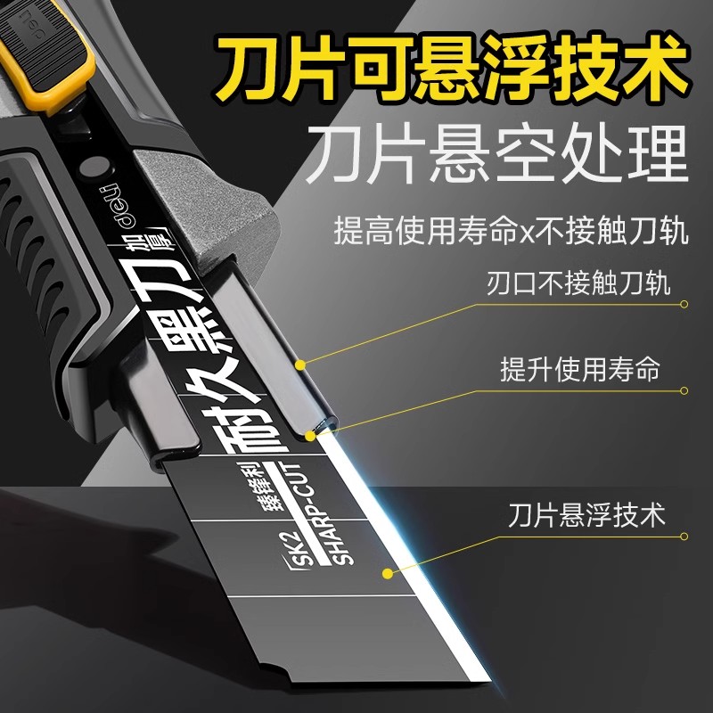 得力美工刀壁纸裁纸快递箱重型加厚耐用工业级多功能全钢刀架工具