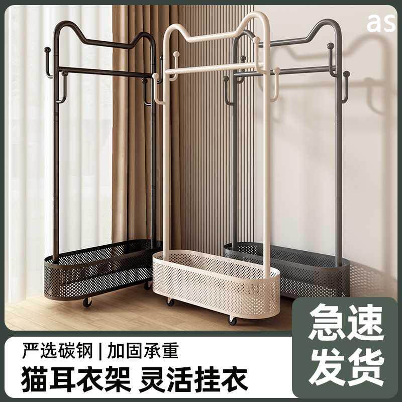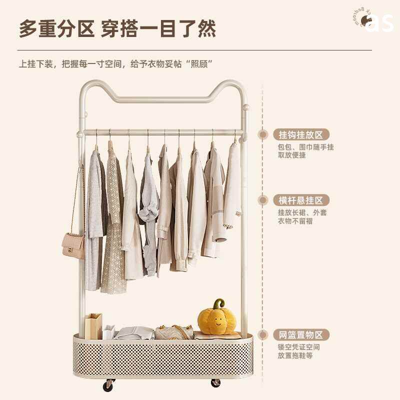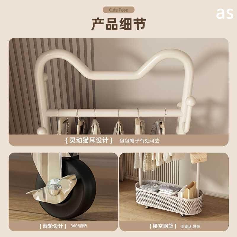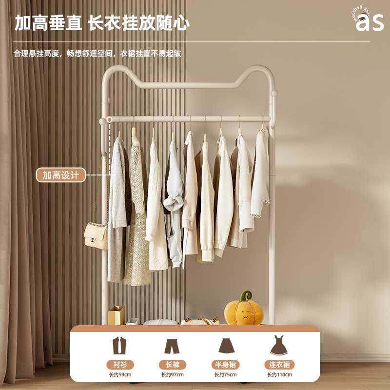挂衣架落地卧室衣架奶油网红风可移动带轮家用简易阳台晾衣帽新品