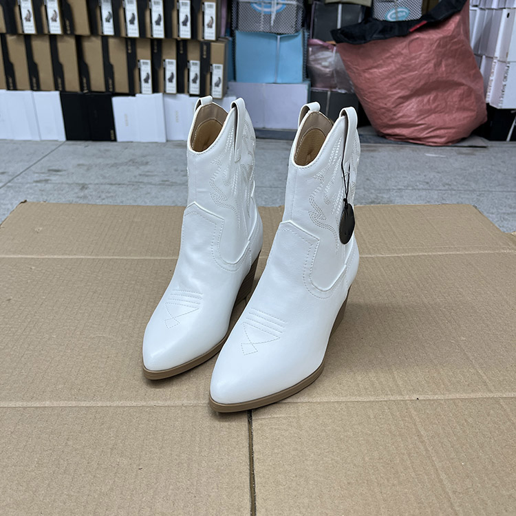 外贸原单时尚马丁靴套筒百搭切尔西部牛仔刺绣尖头粗跟短靴女靴