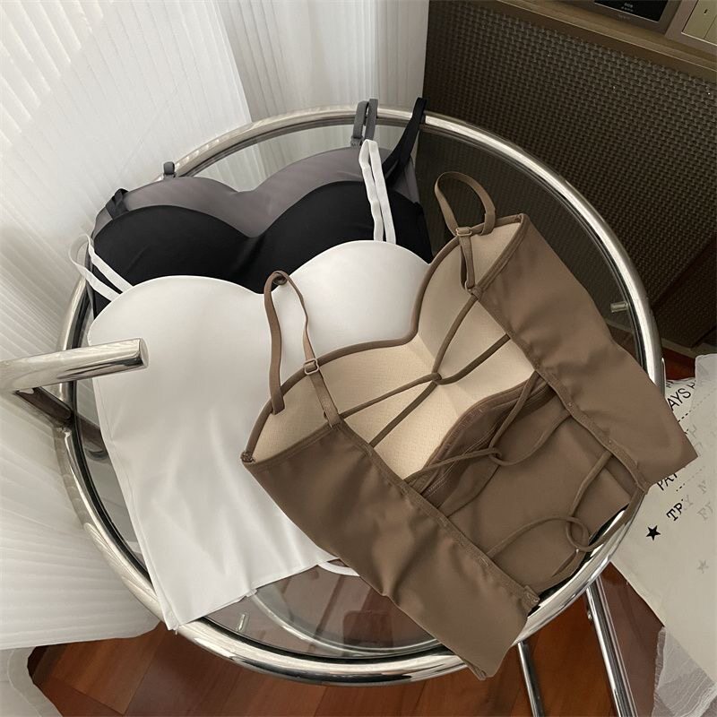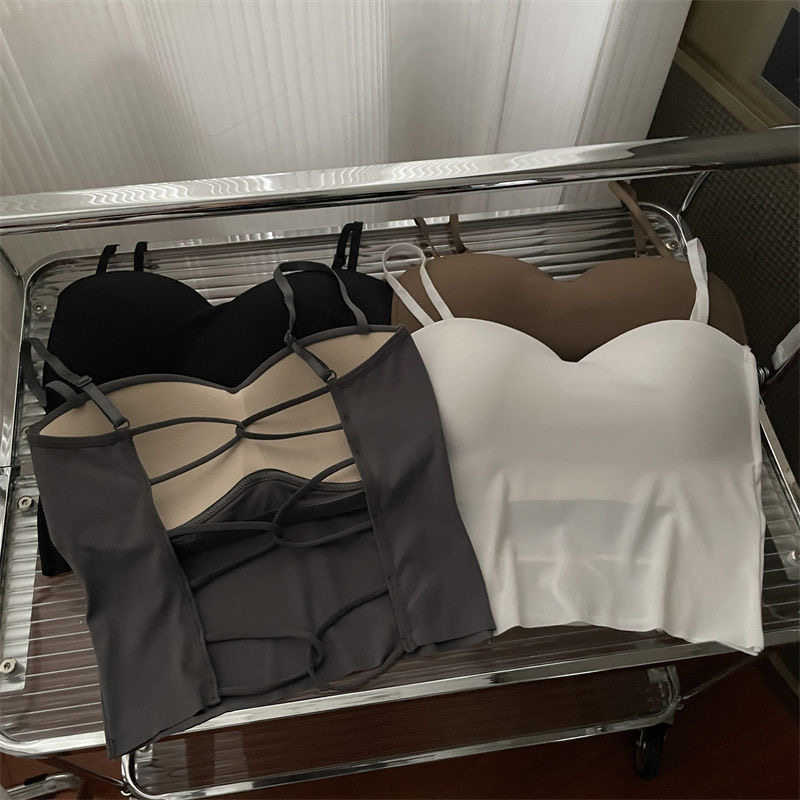 显瘦交叉镂空美背吊带背心女夏季冰丝无痕乳胶固定杯内搭外穿抹胸