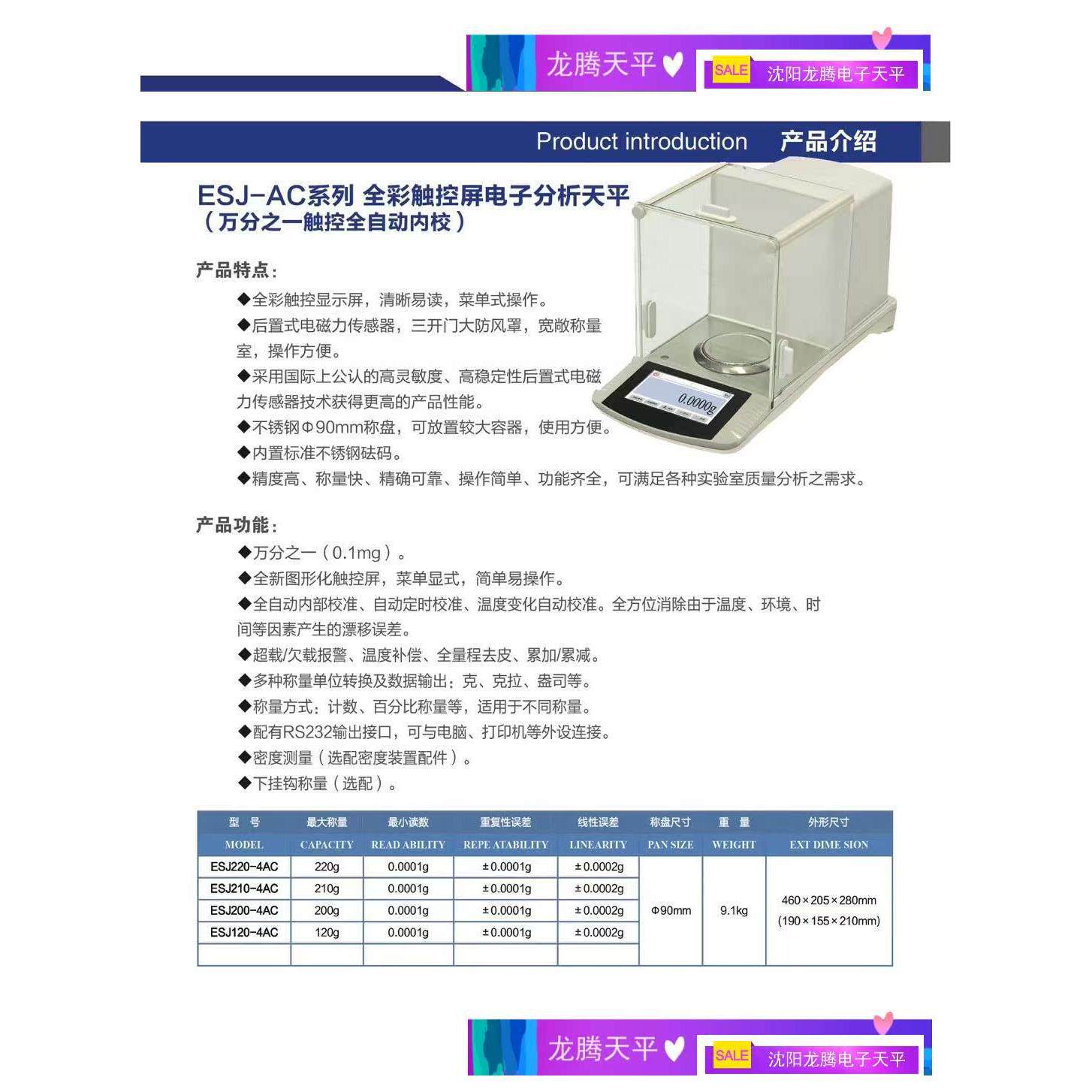 龙腾全新高端触控触摸屏全自动内校0.1mg万分之一0.0001g电子天平