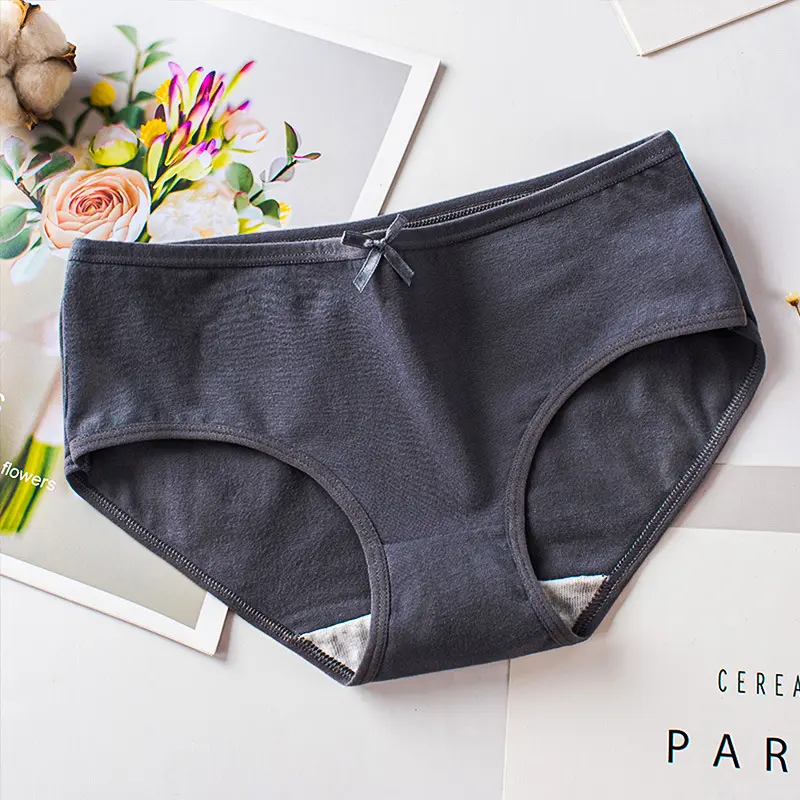 全棉女士内裤透气新款纯色中腰蝴蝶结裤衩日系学生简约三角裤