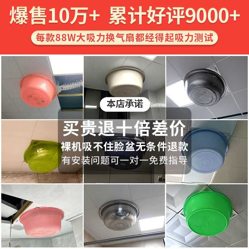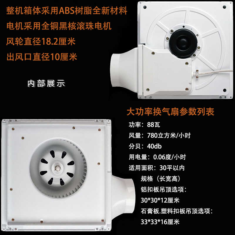 88瓦集成吊顶大功率换气扇30*30厨房卫生间强力排风扇吸顶式静音