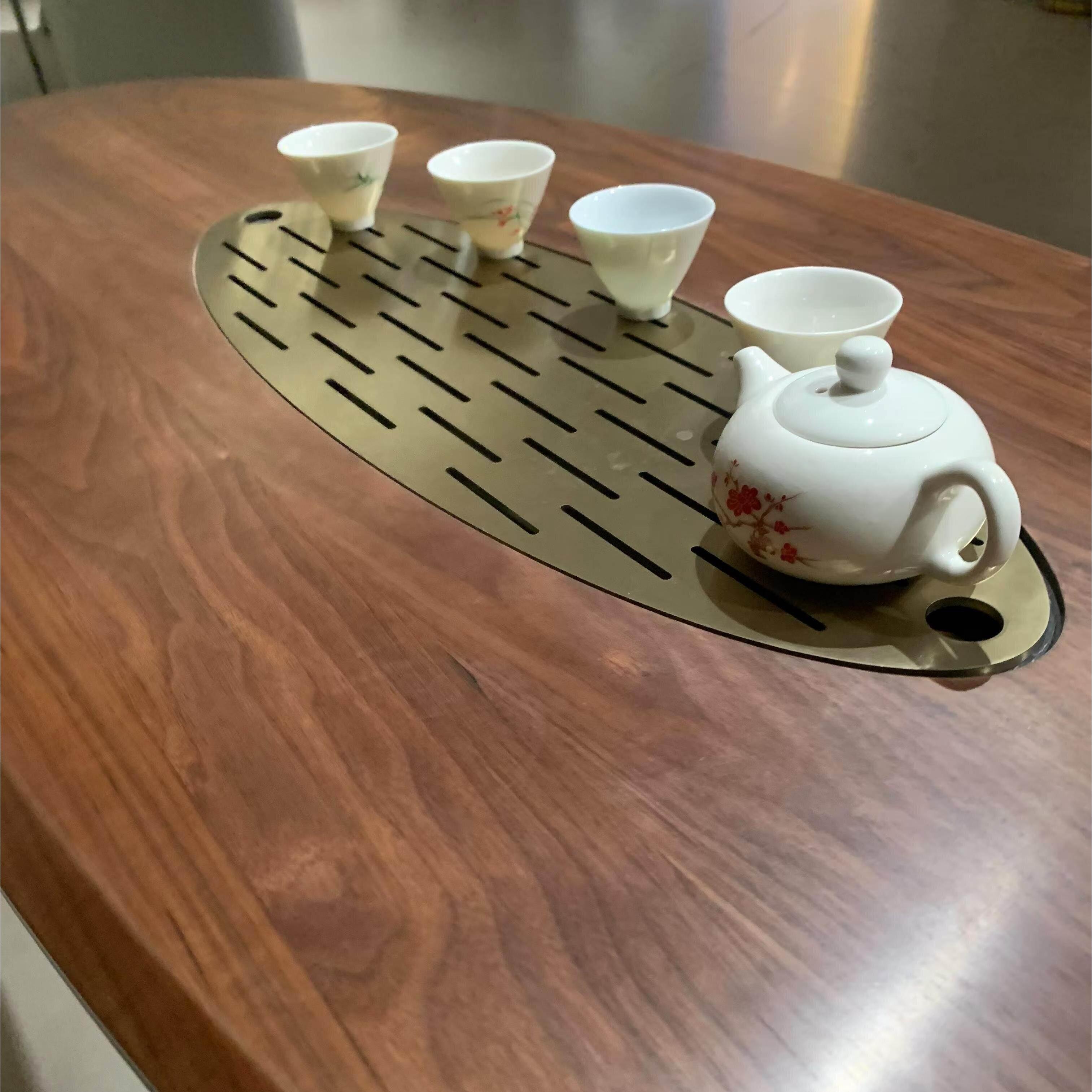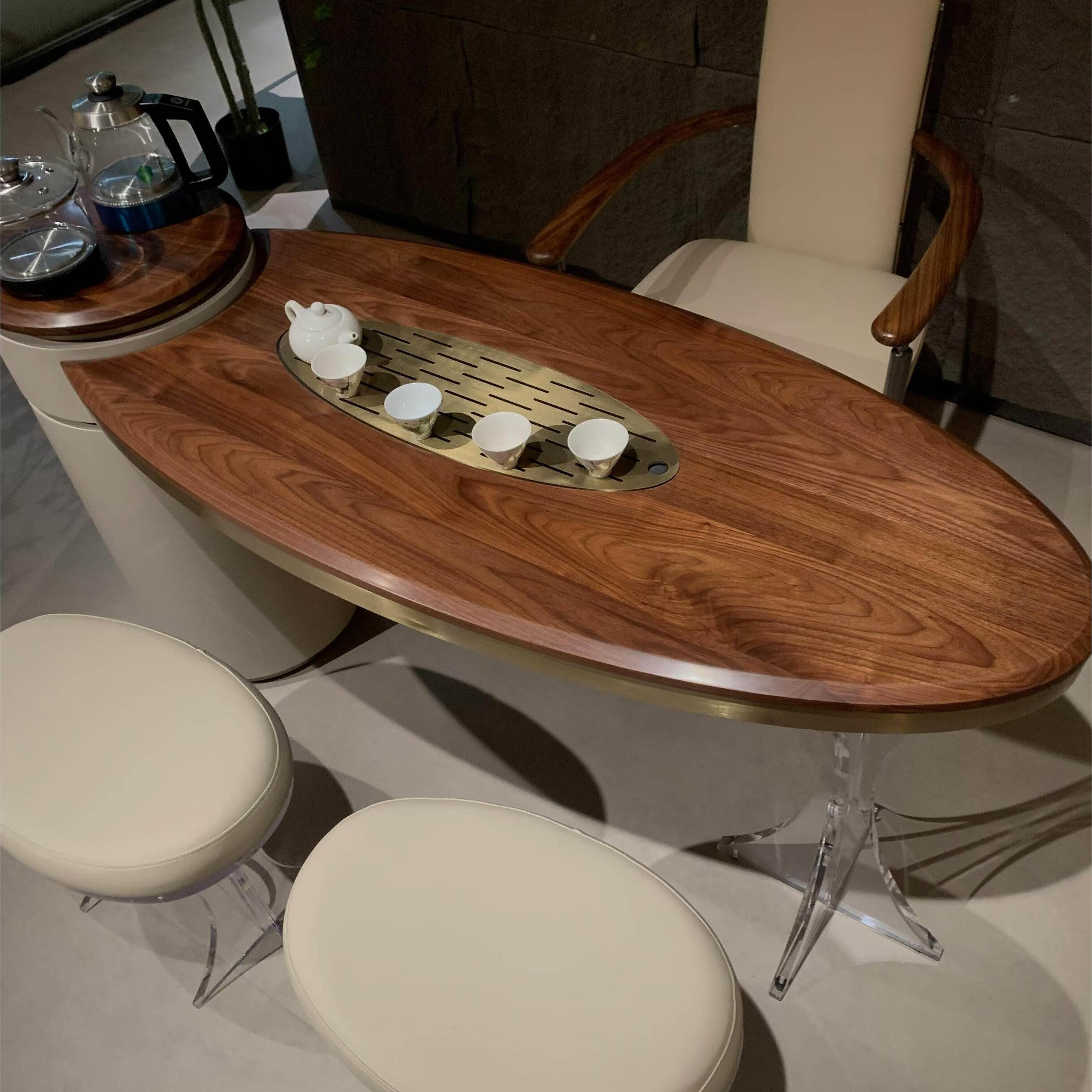新中式禅意黑胡桃木茶桌椅组合现代家用实木茶台亚克力悬浮泡茶桌
