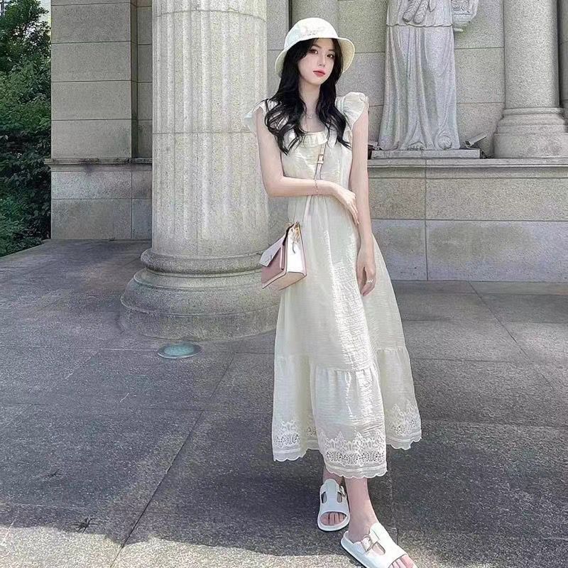法式茶歇初恋小飞袖连衣裙女夏季新款修身显瘦收腰气质中长款裙子