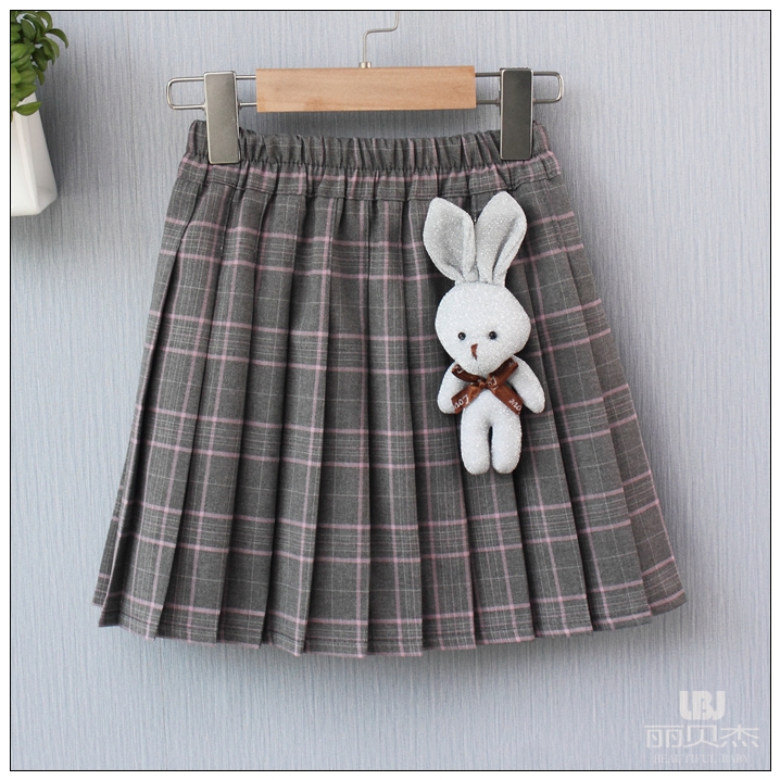 彩条格子条纹女童半身裙儿童短裙秋冬季新款百褶半裙童装JK学院风