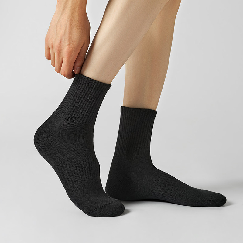 5双袜子男中筒袜高帮黑白纯色商务百搭ins潮纯棉防臭秋冬男士长袜