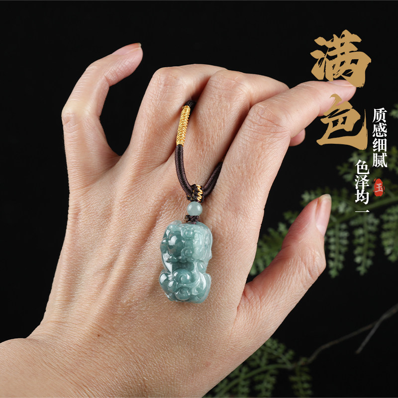 首页> 配饰> 唐今玉天然A货翡翠糯种蓝水小霸王貔貅吊坠玉石瑞兽皮丘男女款挂