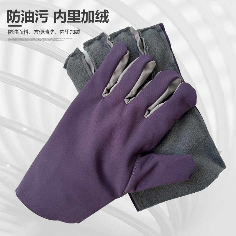 防油防水劳保帆布手套耐油污脏耐磨加绒加厚工业机械电焊全衬工作