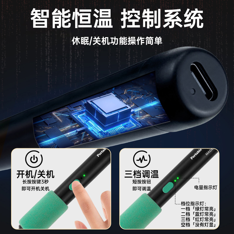 USB便携式电烙铁家用线三档调温小型迷你烙铁电焊笔TYPE-C接口