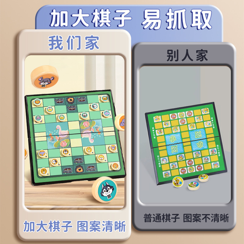 得力斗兽棋儿童小学生动物棋飞行棋可折叠五子棋子磁力高级兽斗棋