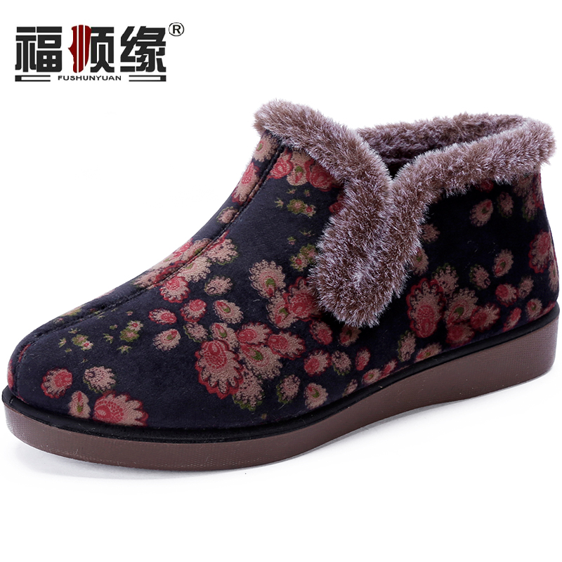 福顺缘冬季新款保暖套脚妈妈棉鞋 宽松布鞋中老年女鞋大码414243