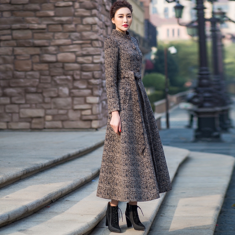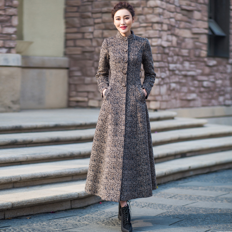 首尚衣品2023秋冬新款中长款修身气质显瘦立领毛呢外套羊毛大衣