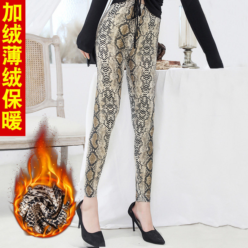 豹纹裤子女士冬季新款加绒紧身裤小脚裤铅笔裤修身韩版打底裤