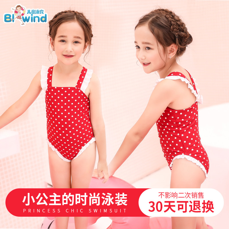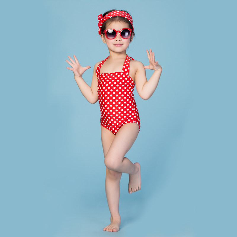 女童宝宝幼儿童泳衣连体波点休闲度假沙滩游泳衣温泉学生