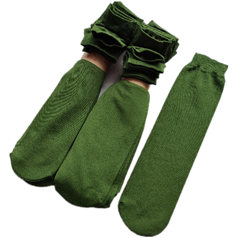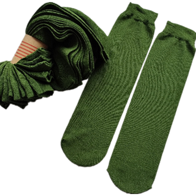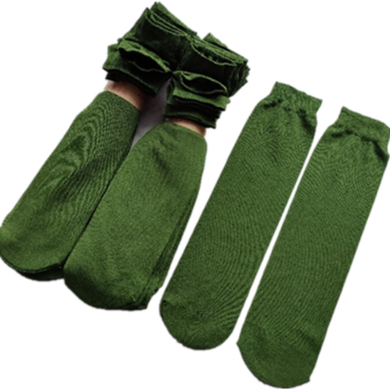 纯军绿色袜子5双包邮 涤棉薄丝袜中筒短袜男女学生运动袜军训锻炼