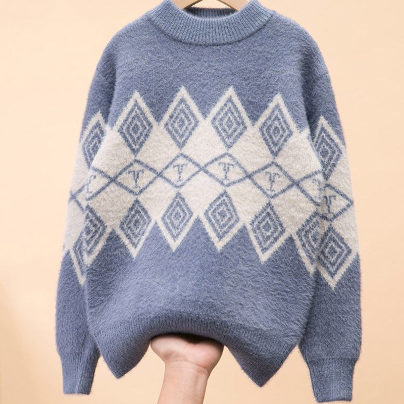 男女童圆领毛衣儿童水貂绒套头加厚针织打底衫中大童春秋冬毛线衣