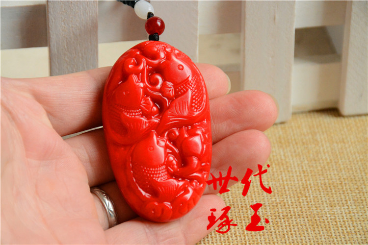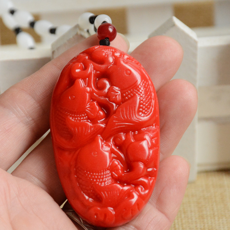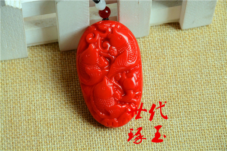 新疆和田玉富贵有余鱼手把件鸡血石玉招财三鱼如意挂件鱼把玩玉坠