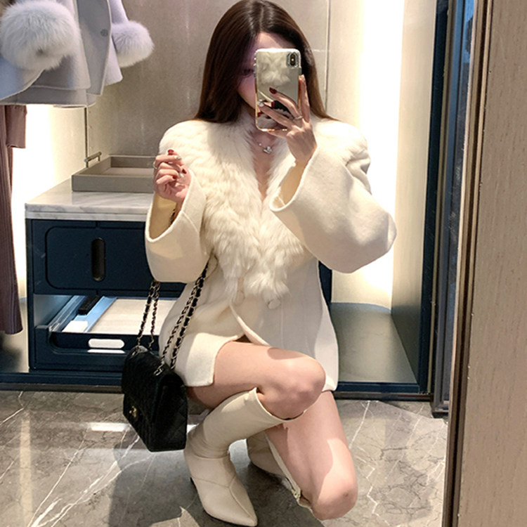 千金感小香风毛呢外套女秋冬季纯欲设计感收腰显瘦中长款呢子大衣