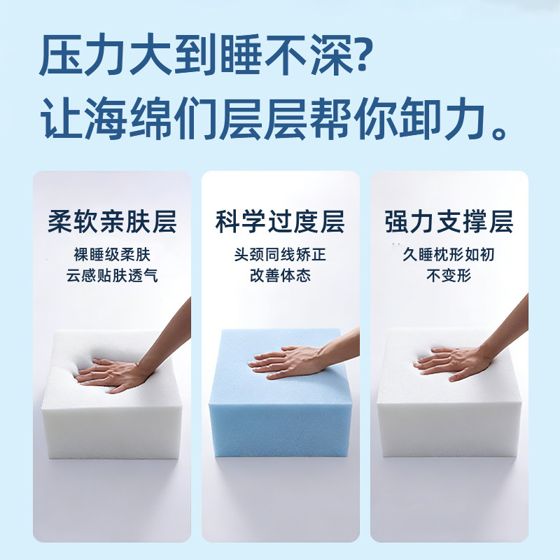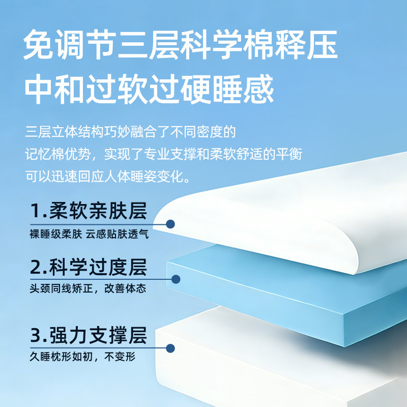 零压深睡记忆棉枕头护颈椎助眠慢回弹慢回弹记忆棉柔肤环保枕头
