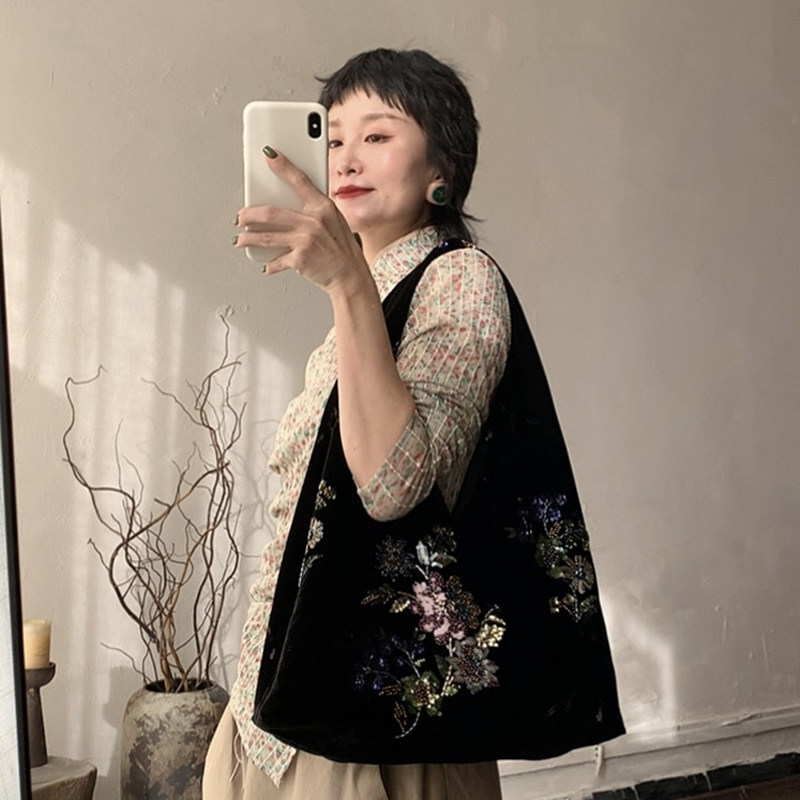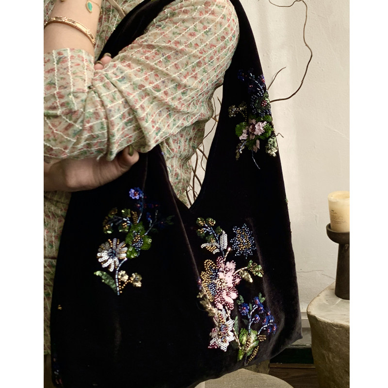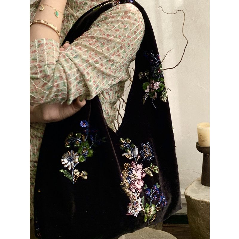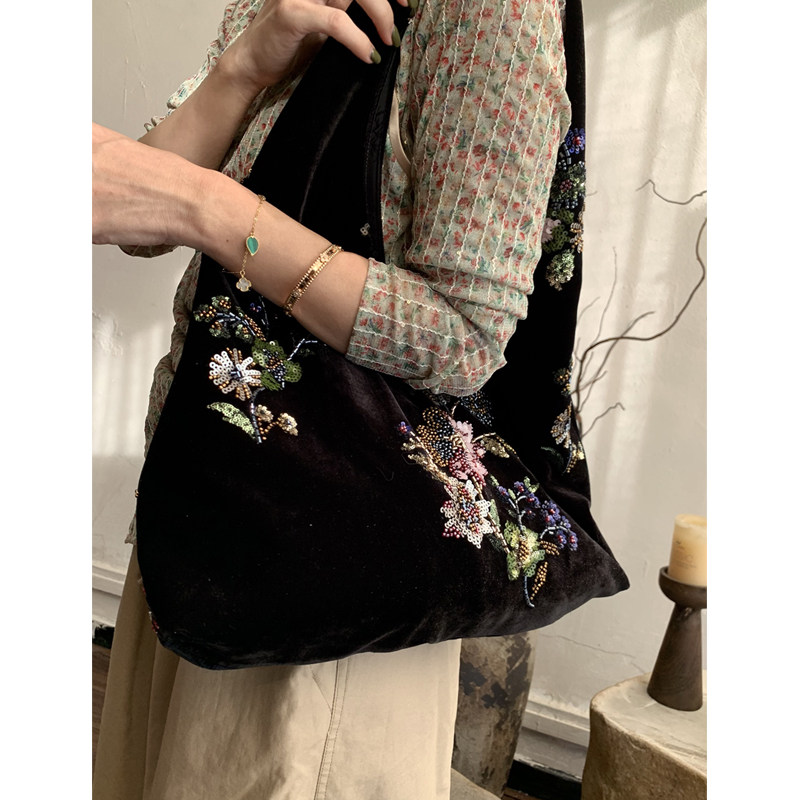 首页> 鞋包> 丝绒刺绣单肩包女2025冬季新款大包原创小众新中式气质百搭腋下包