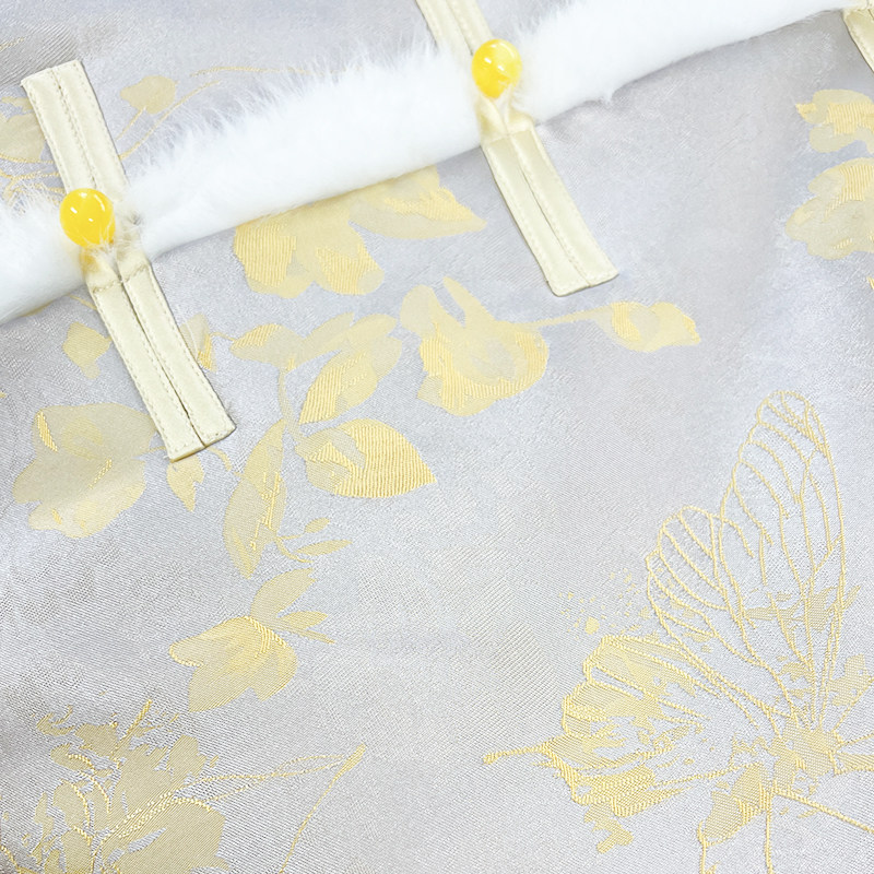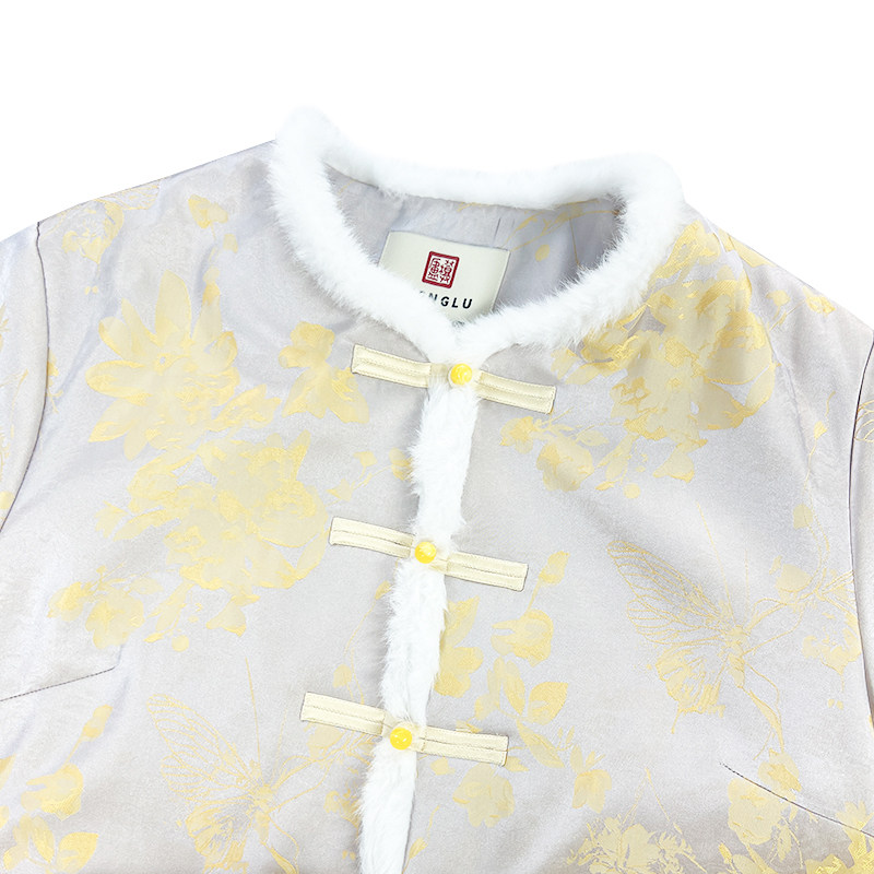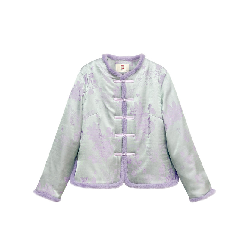 【橙庐】513506原创新中式蝶恋花提花毛领夹毛棉服 秋冬女中国风