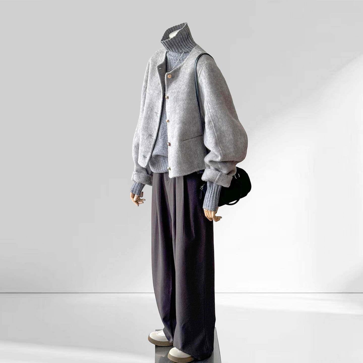 短款灰色双面羊绒毛呢子大衣外套女2025年秋冬季新款高级感小个子