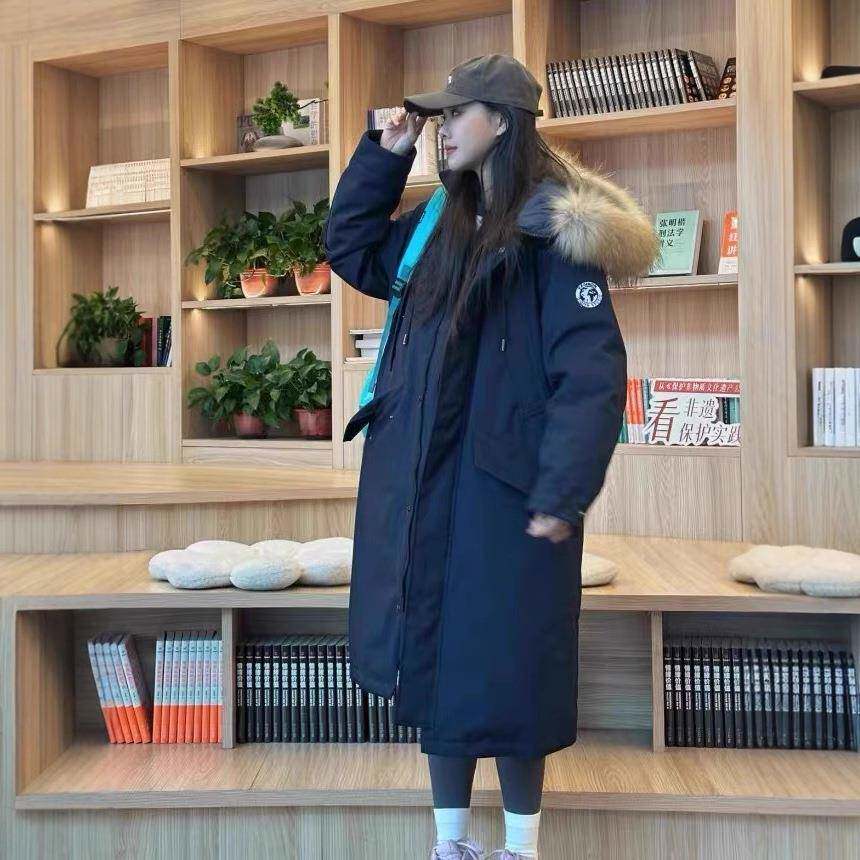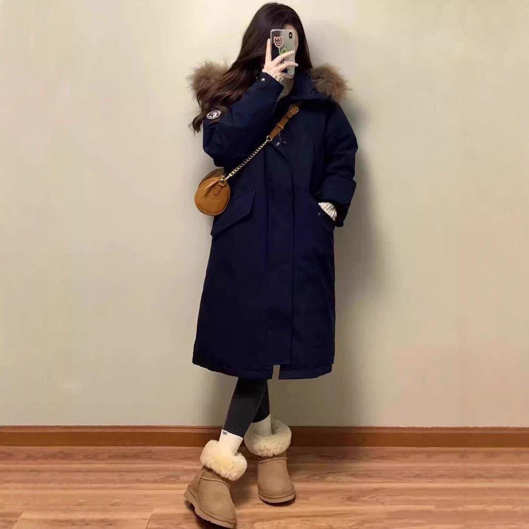 长款过膝大毛领派克服女2025冬新款韩系宽松加厚羽绒棉衣工装外套