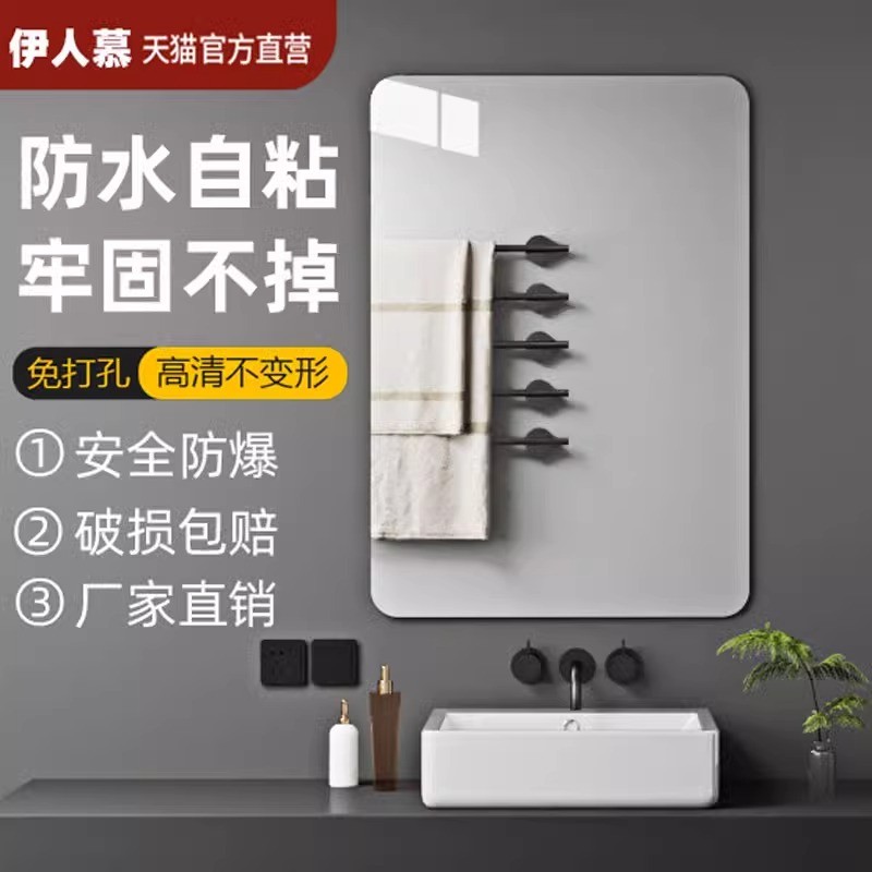软镜子贴墙自粘贴卫生间浴室镜家用厕所梳妆镜免打孔亚克力化妆镜