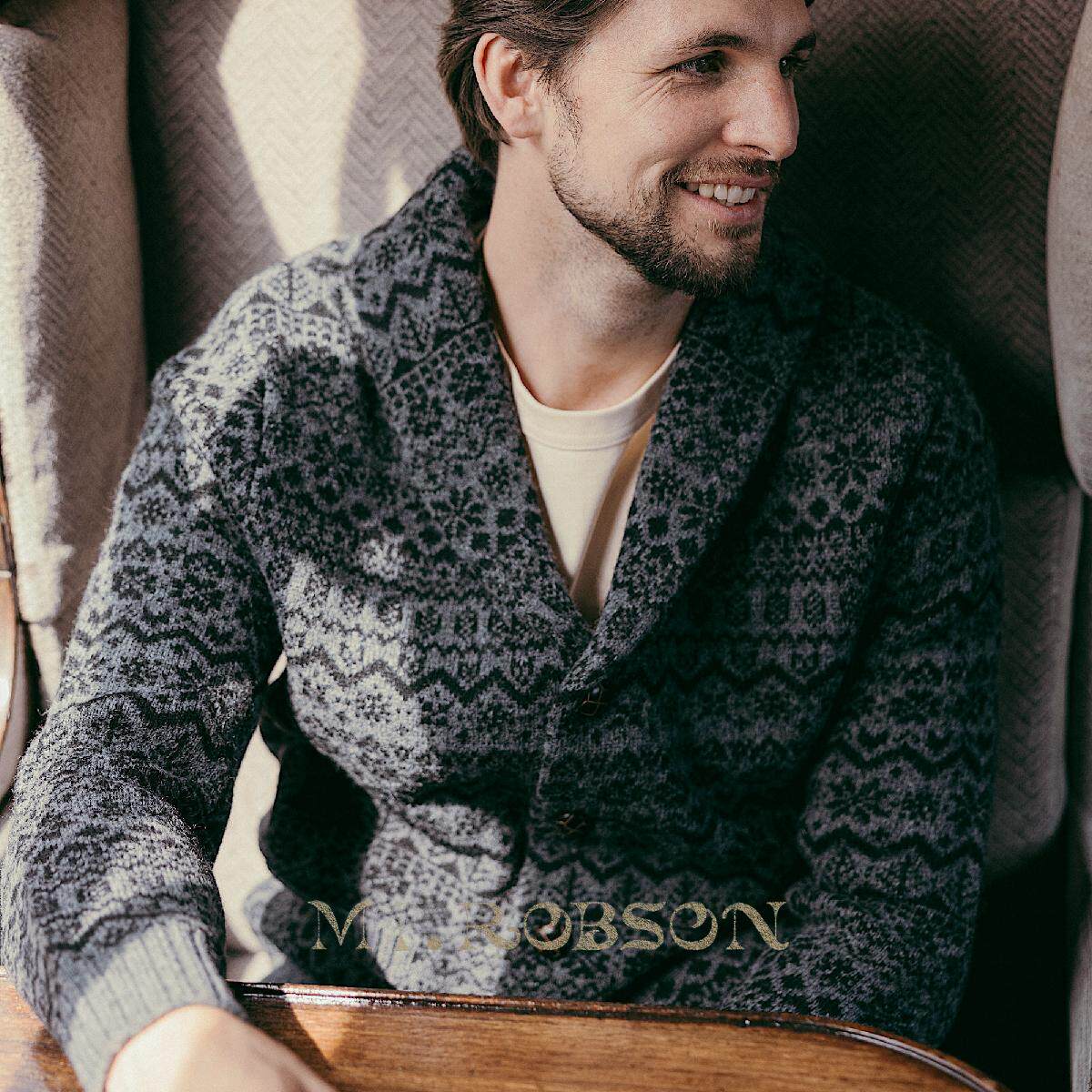 独家经典开衫】MTROBSON 青果领重磅羊毛夹克毛衣美式复古费尔岛