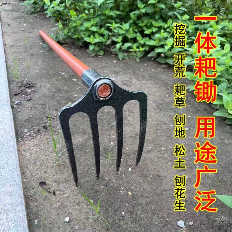 新款65锰钢叉锄齿耙刨地耙子加厚钉耙翻地农用松土锰钢锄头刨花生