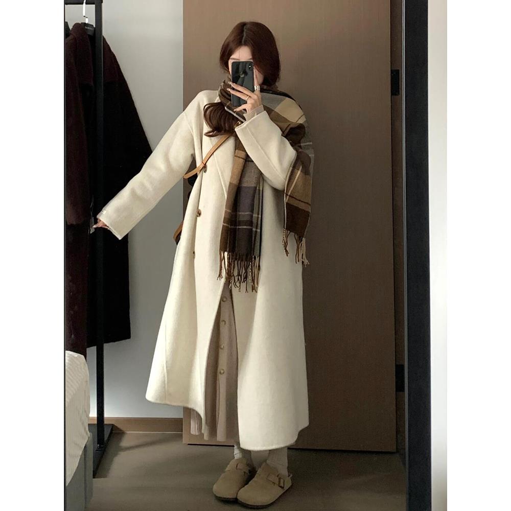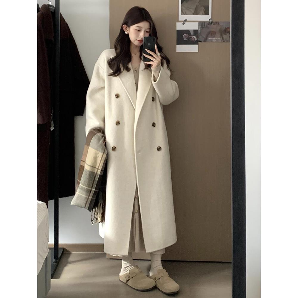 呢子大衣女中长款小个子2024新款秋冬季加厚高级感正肩羊毛呢外套