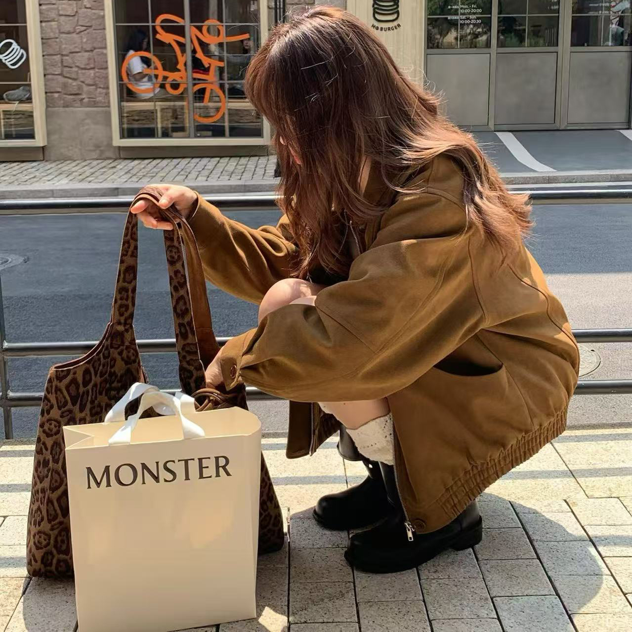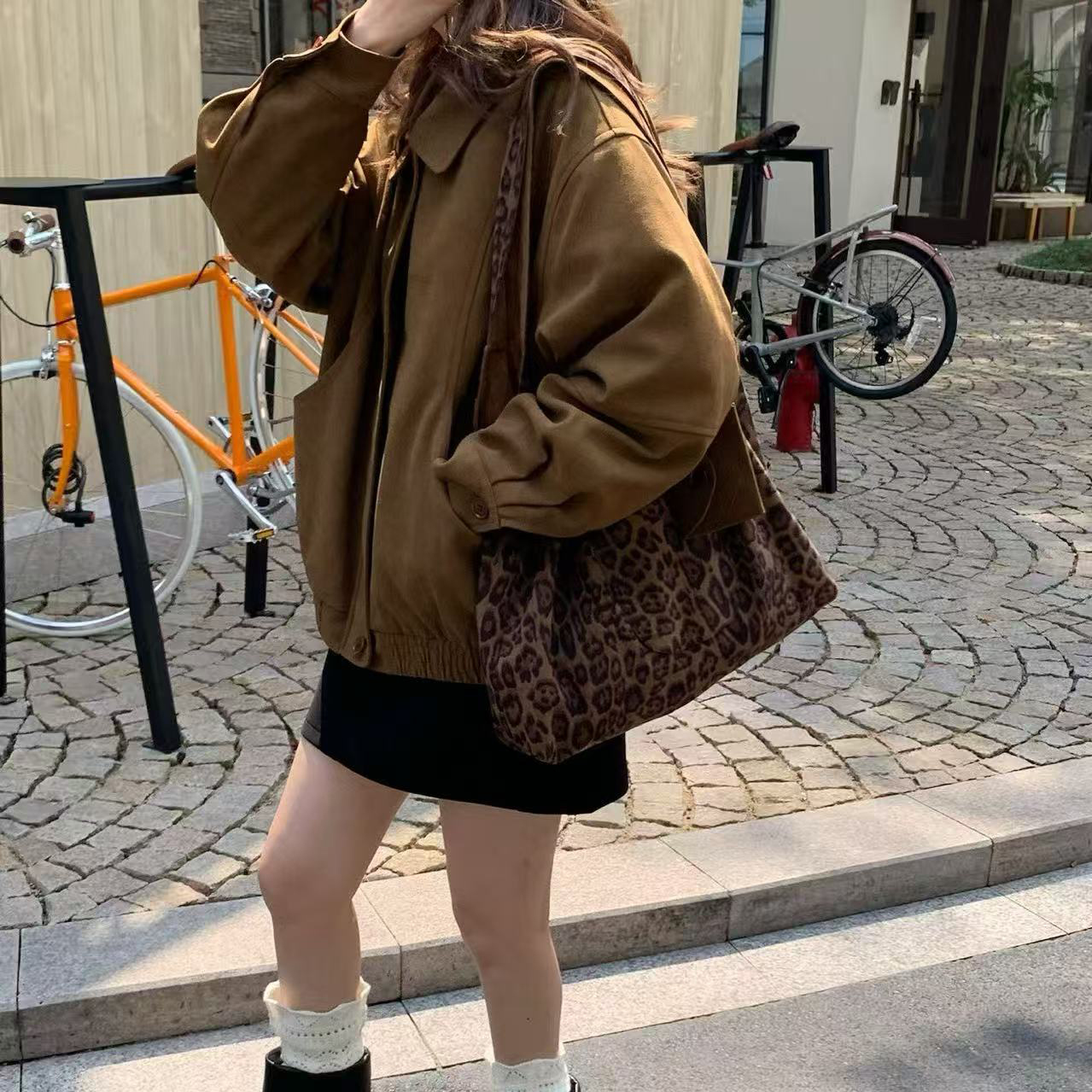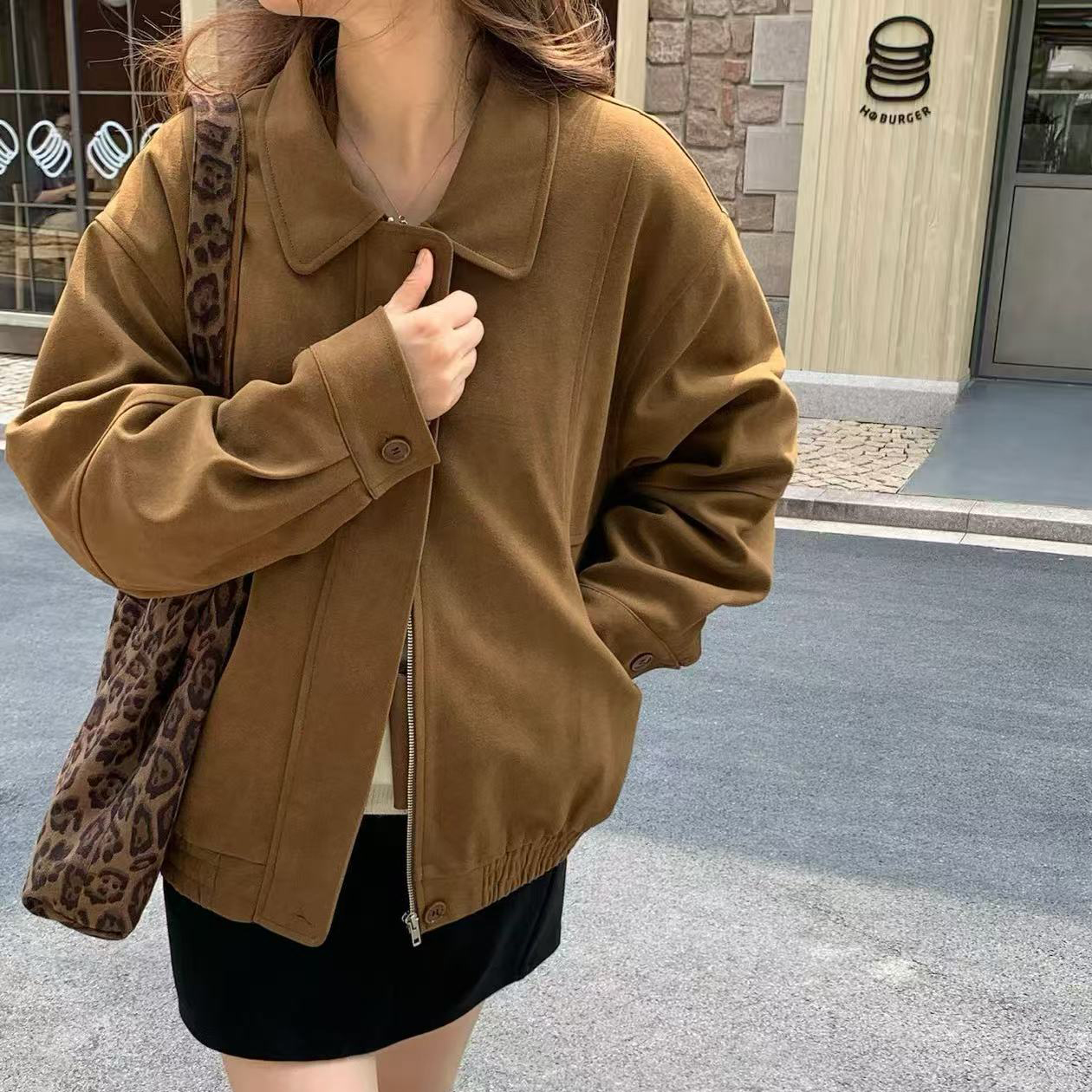 法式高级感美拉德复古宽松鹿皮绒棒球服帅气机车外套 配小包