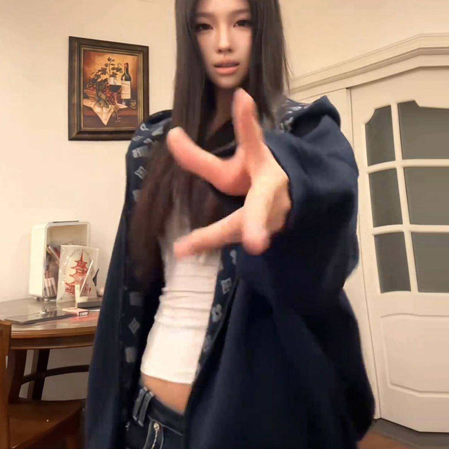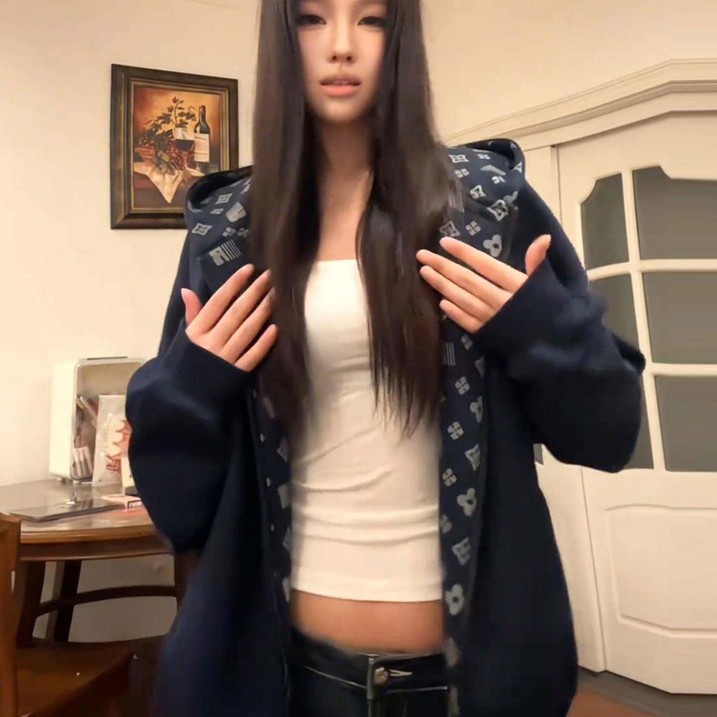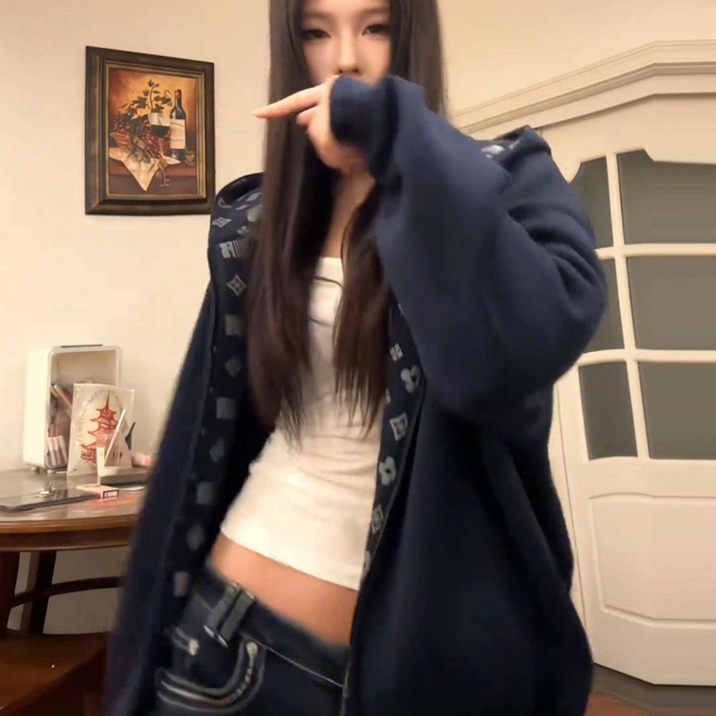 美式复古印花连帽开衫外套女秋季2025新款设计感小众宽松百搭卫衣
