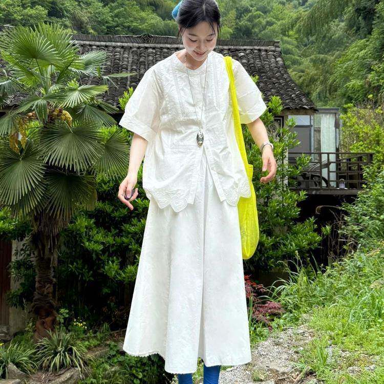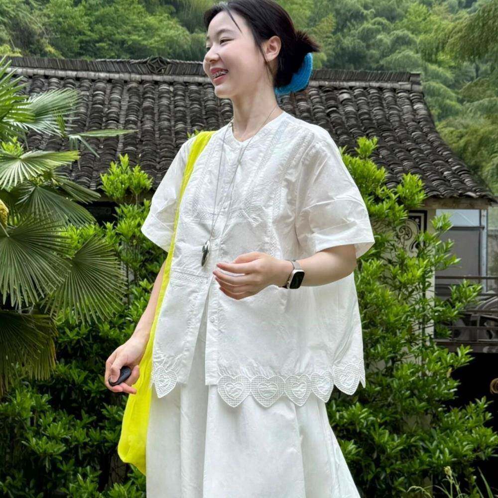 独超好看白色衬特衫短袖女上夏季设计小RDL众泡泡袖蕾丝感镂空衬