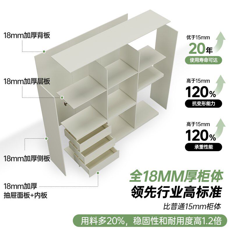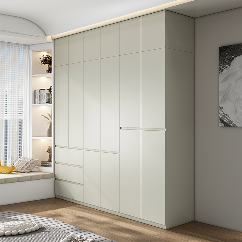 定制免拉手ENF级加高顶部2.6/2.8/3.0米分段式免拉直器奶油灰衣柜