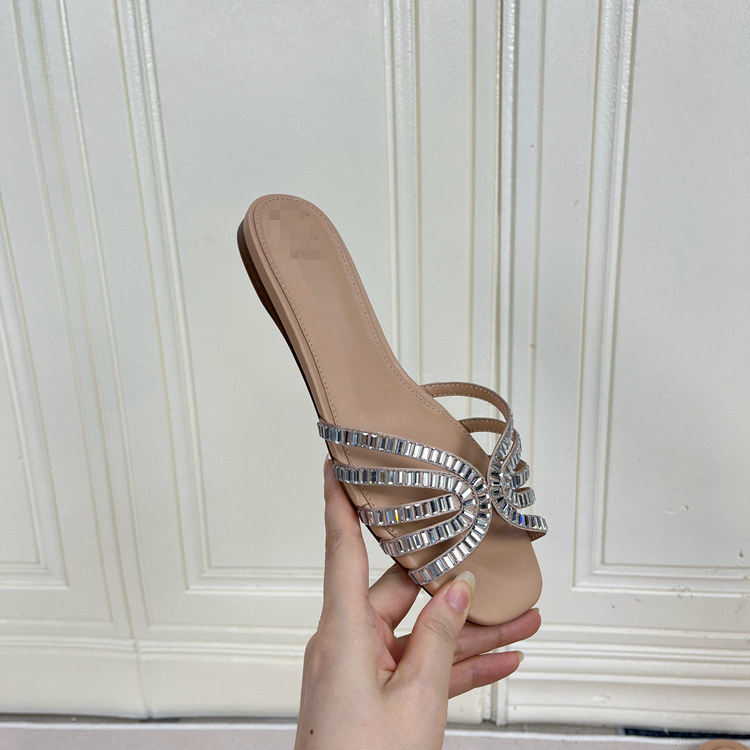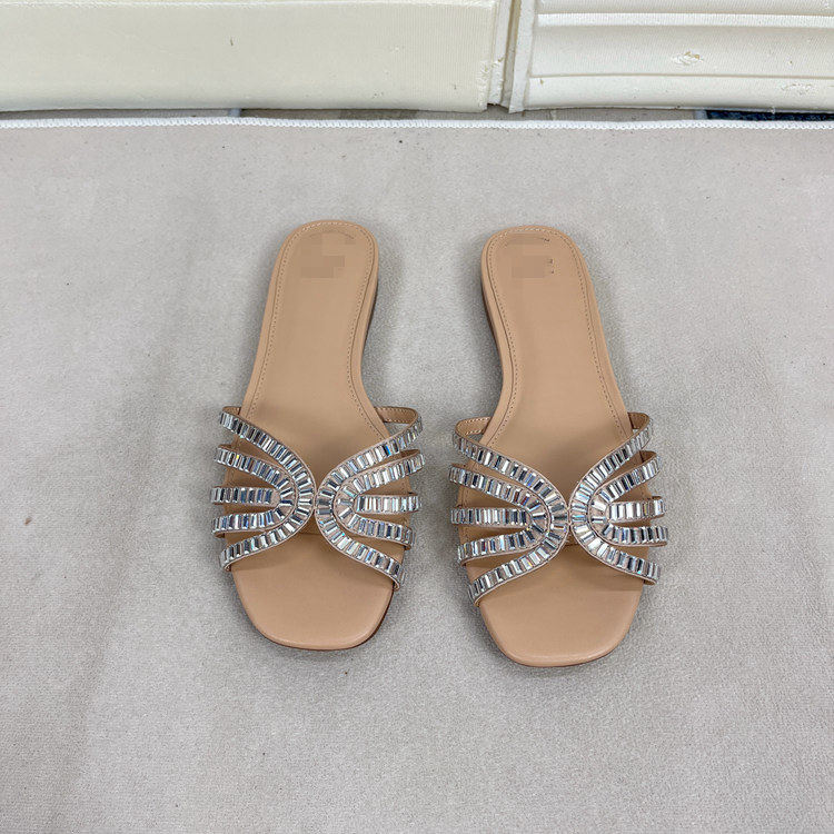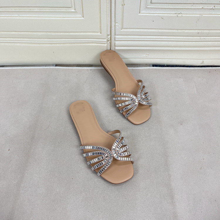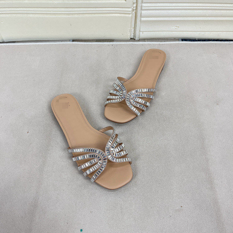 外贸原单方头带钻平底拖鞋简约时尚新款一字拖舒适休闲日常外穿