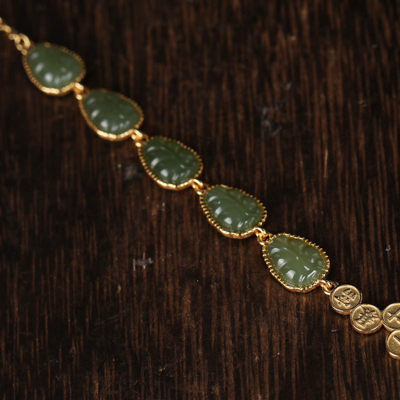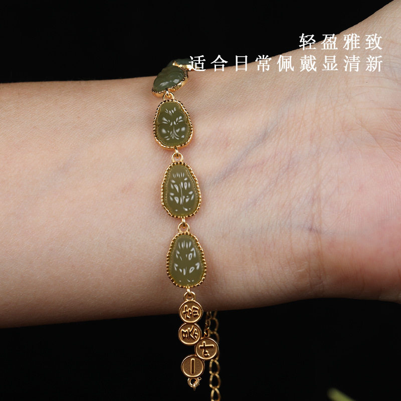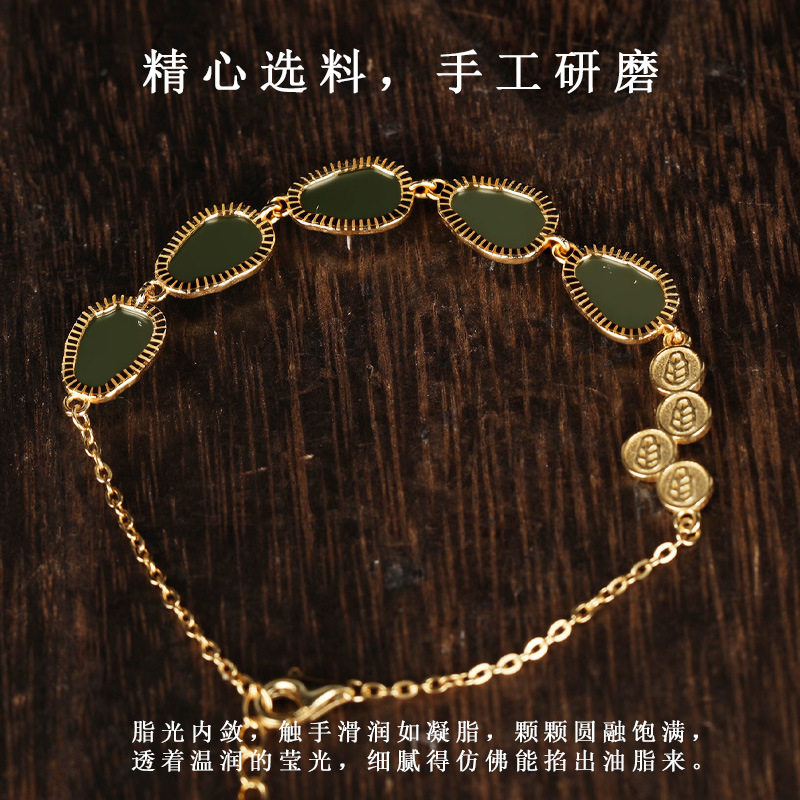 唐今玉S925银镶天然和田玉金枝玉叶手链小众设计感高级一夜暴富