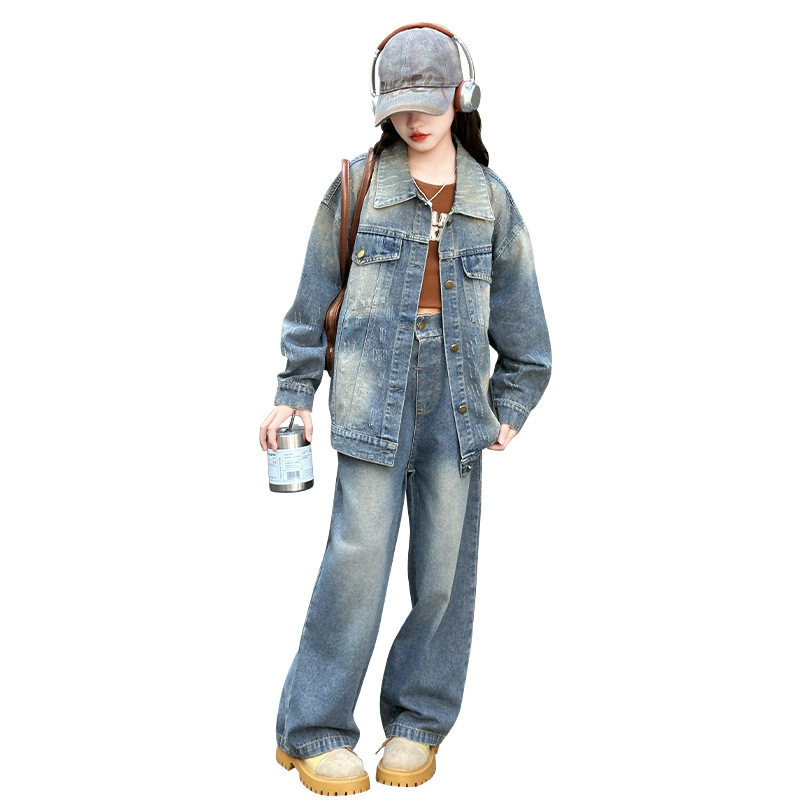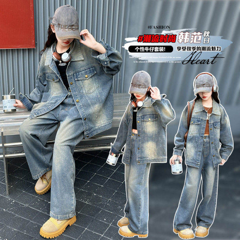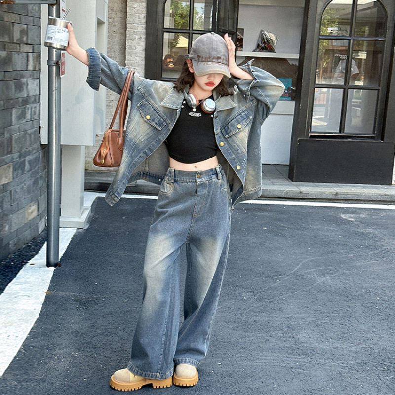 女童牛仔外套秋装洋气2025新款女大童休闲网红春秋牛仔阔腿裤套装